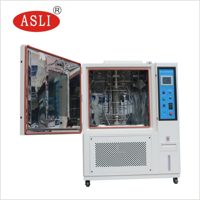 The chamber can test materials for color fastness, lightfastness, and weather resistance, making it useful across industries such as textiles, automotive, packaging, construction, and electronics. It can also simulate fading, cracking, chalking, brittleness, and other forms of weather-induced deterioration.